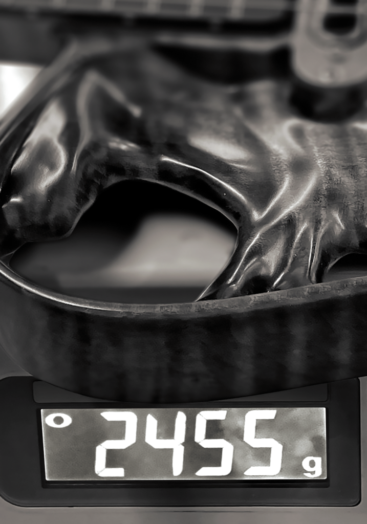 音響特性を最優先に設計された形状でありながら、削り込まれたボディは2.5kgを下回る軽量仕様となっています。
