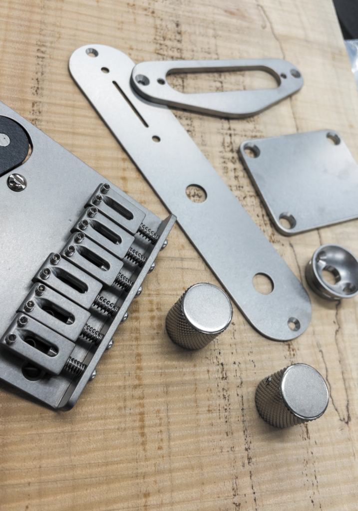 もともと眼鏡フレームの製造で培われた高度なチタン加工技術を活かし、2007年よりギター用パーツの開発に着手。